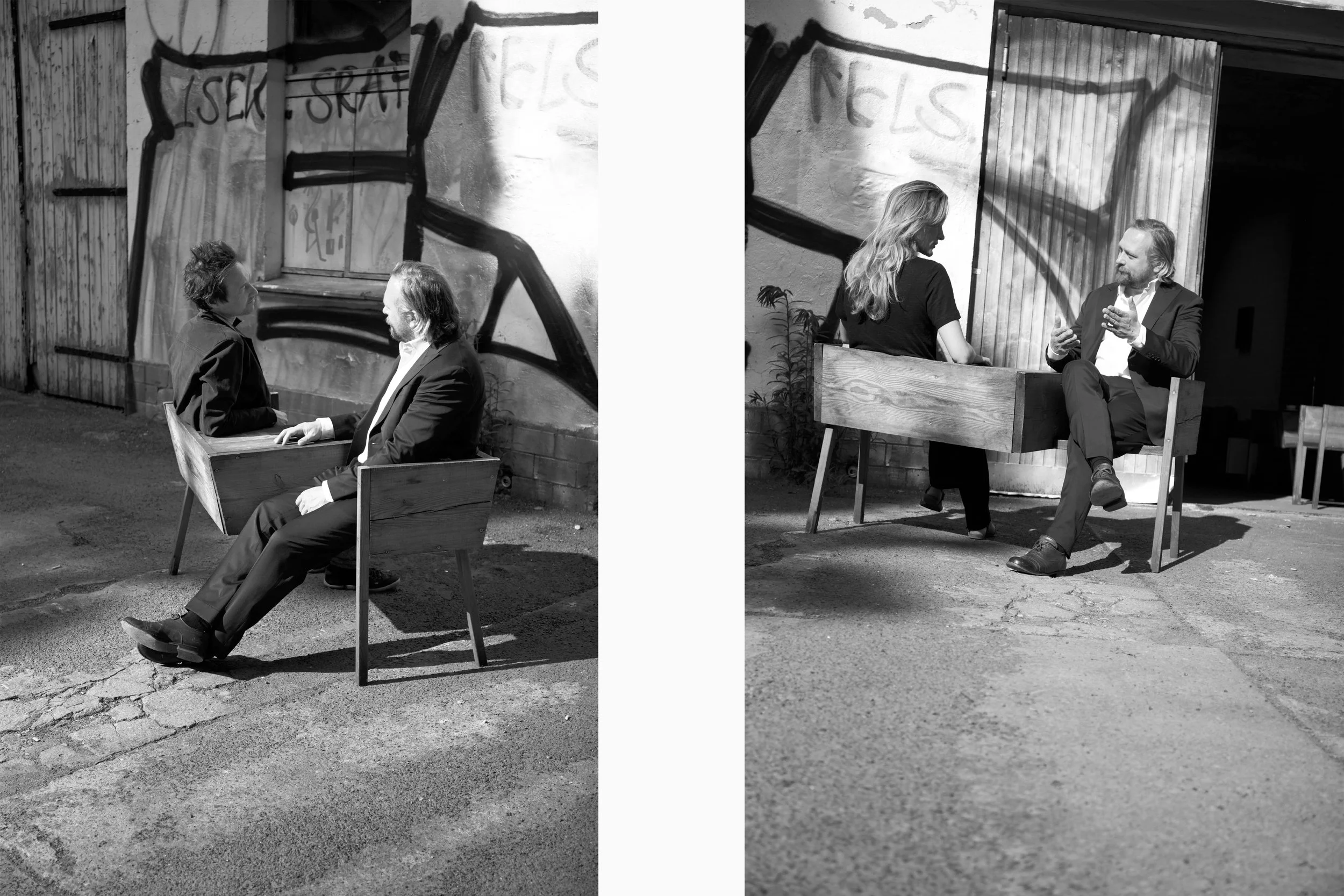 MM Yes. When you look together in one direction and see what is happening - you look at everyday life, the flow of the street - then you relate to the conversation differently. When you sit opposite each other, you are more concentrated and more together.