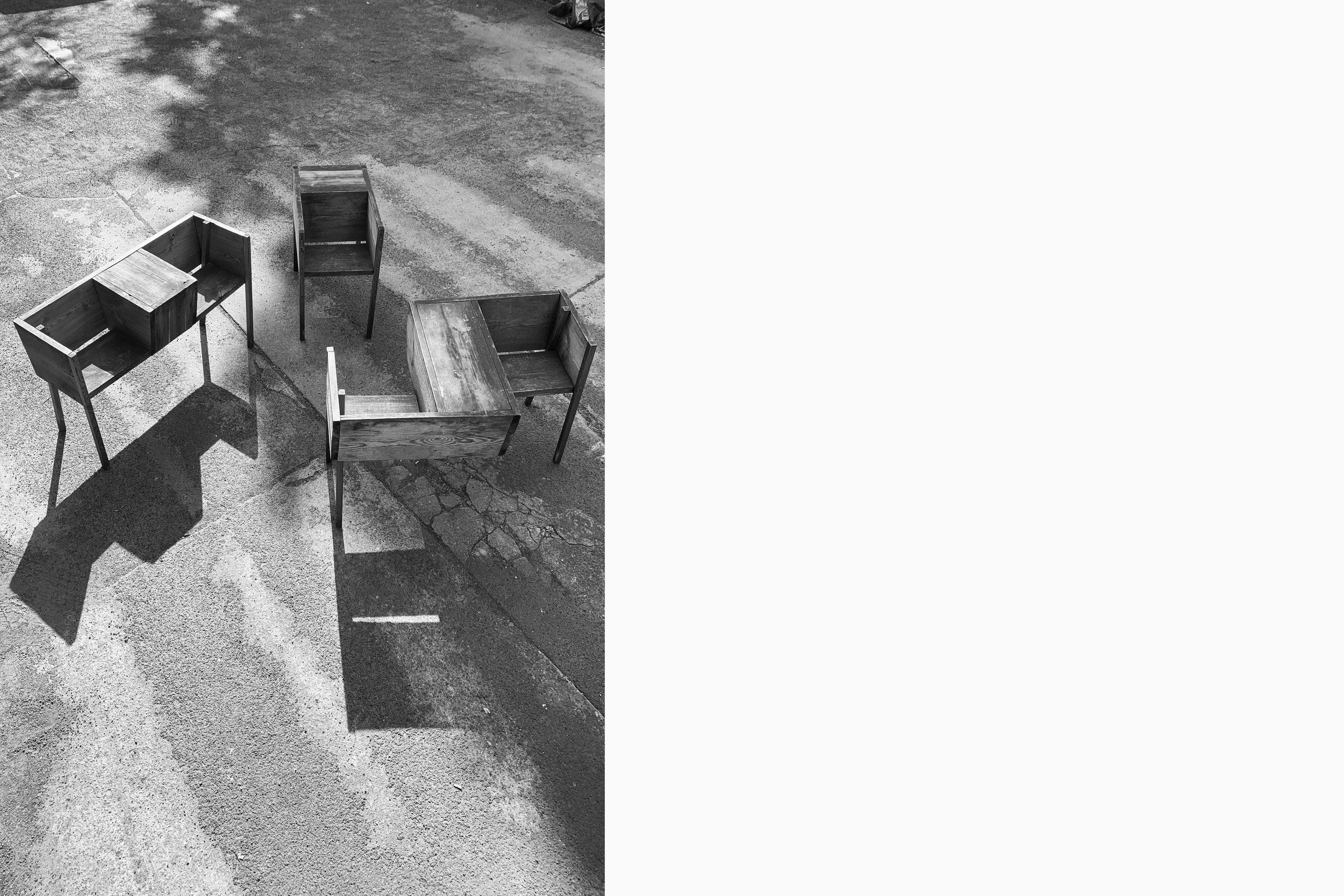 My aim was to explore different possibilities of conversation in the sketchiness of quickly assembled furniture. This led to La Causeuse, Le Confidant, Le Solitaire and Le Dos-à-Dos.